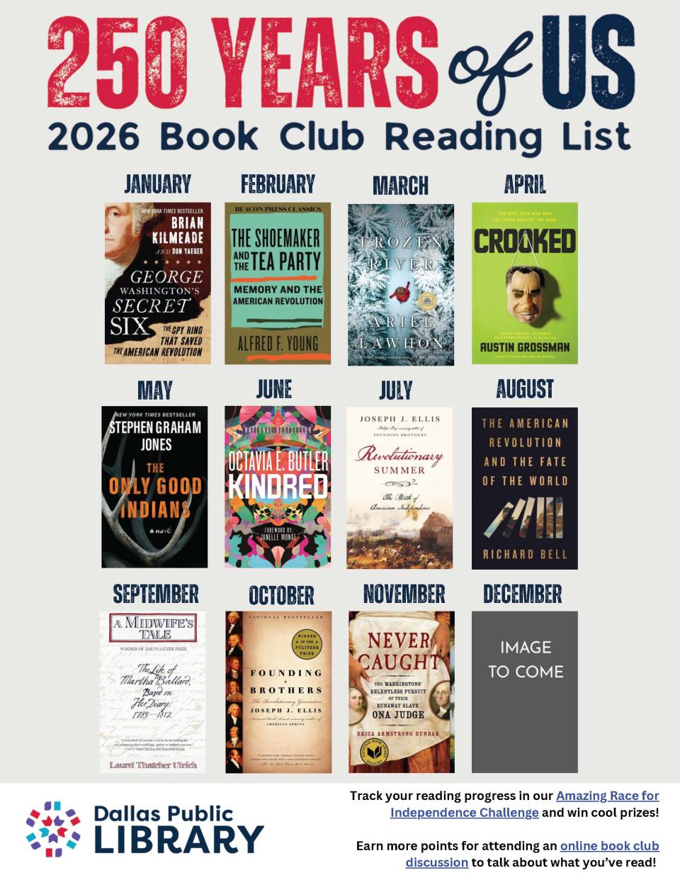 Attend monthly online book discussions hosted by the Dallas Public Library, George W. Bush Presidential Library and special guests. Check back throughout the year for additional dates and times.